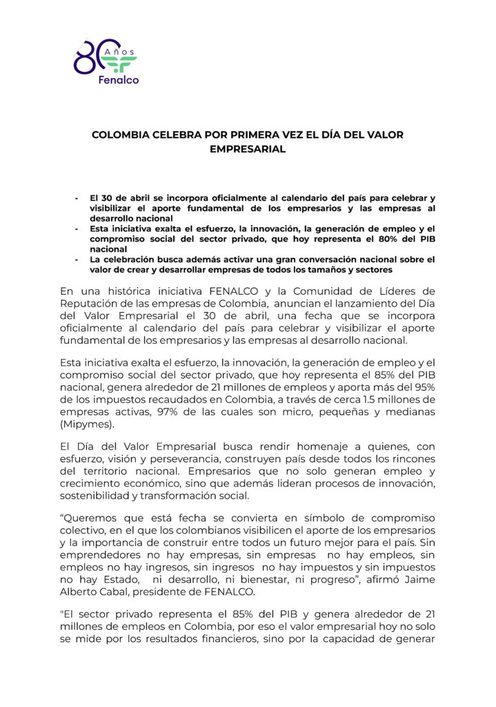 COLOMBIA CELEBRA POR PRIMERA VEZ EL DÍA DEL VALOR EMPRESARIAL
